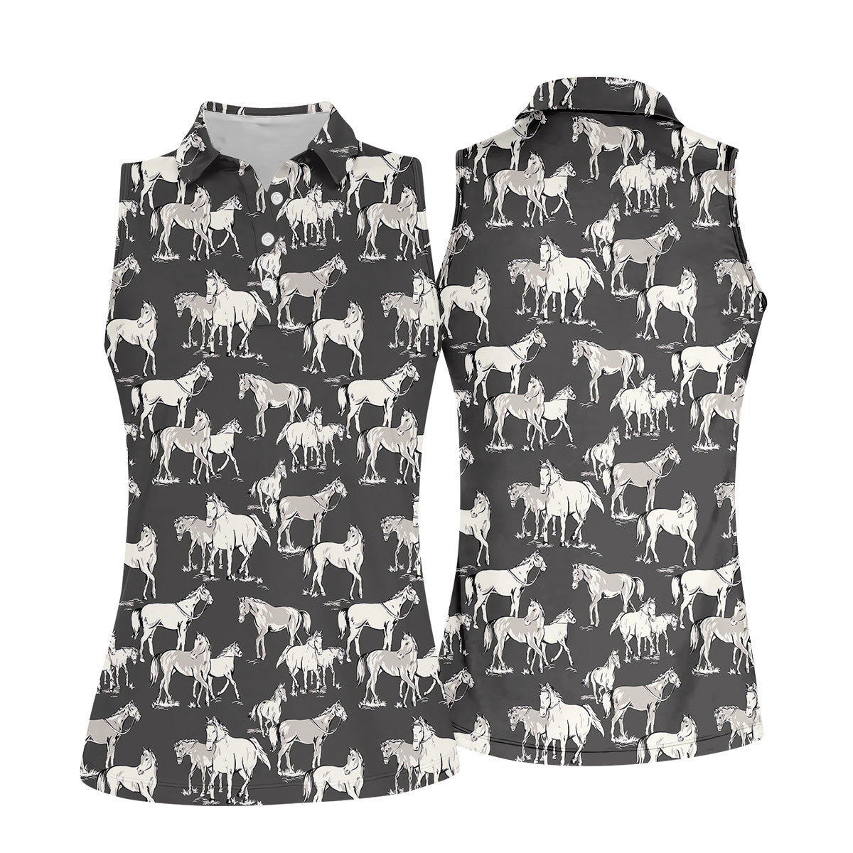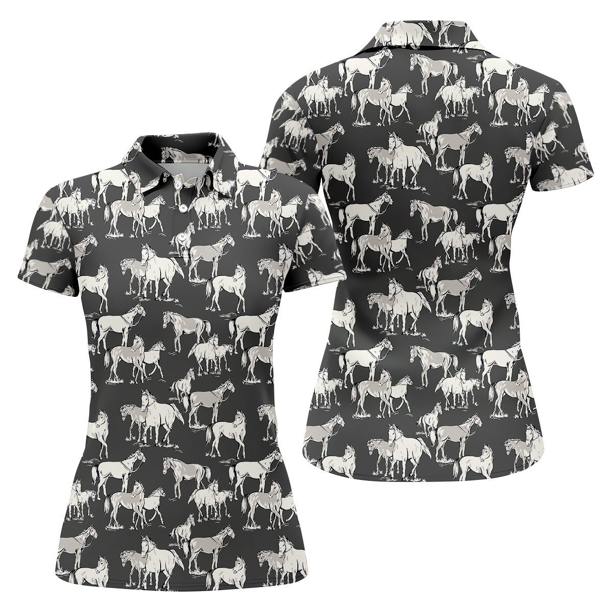 Wild Horse Seamless Pattern Women Golf Top, Golf Shirt For Women, Ladies Golf Polos