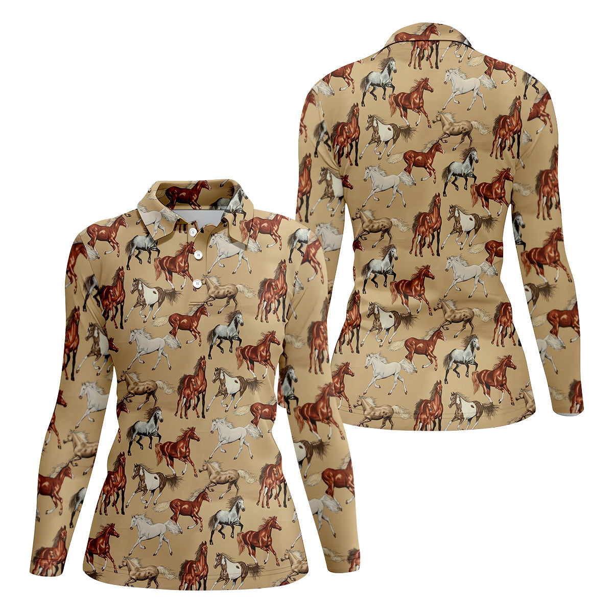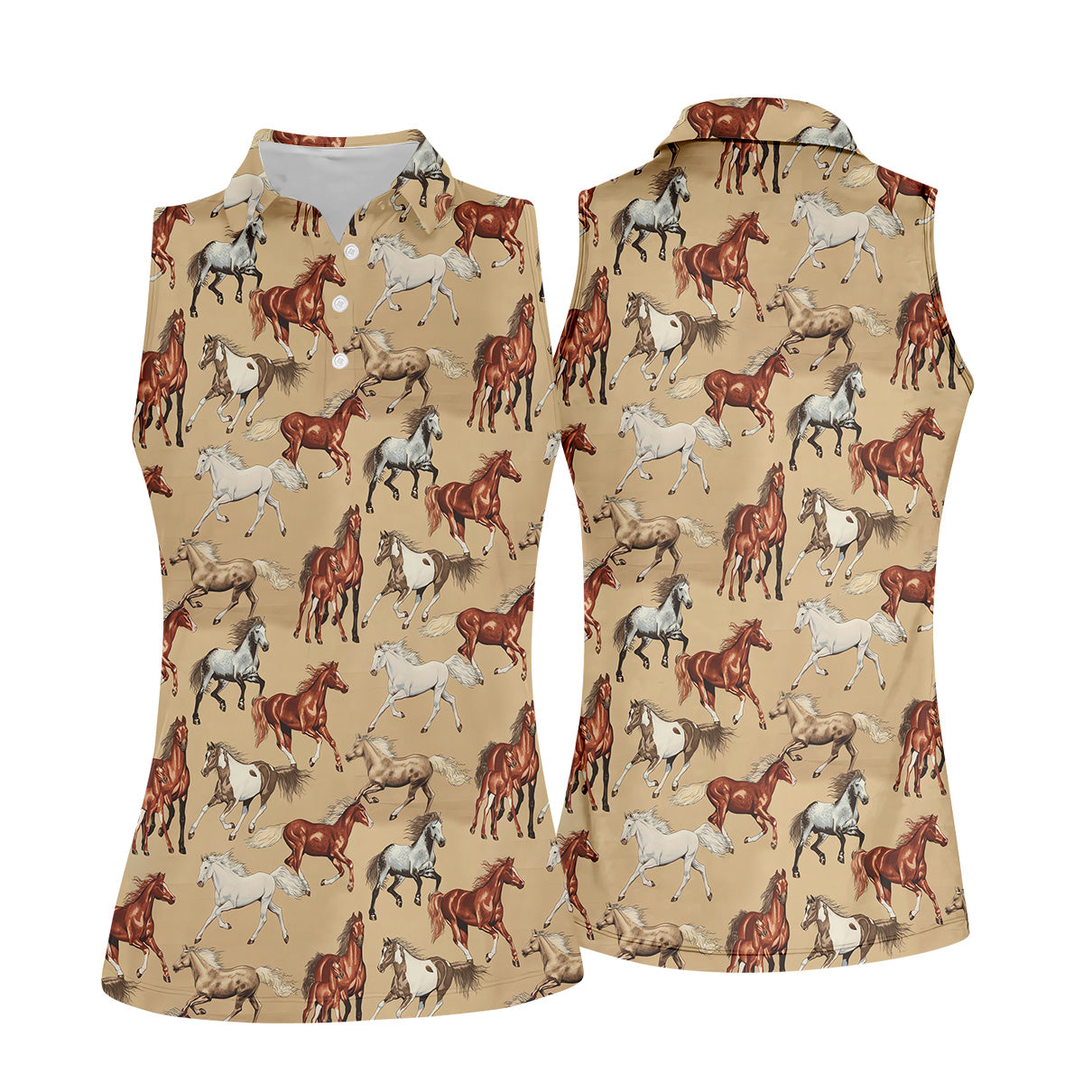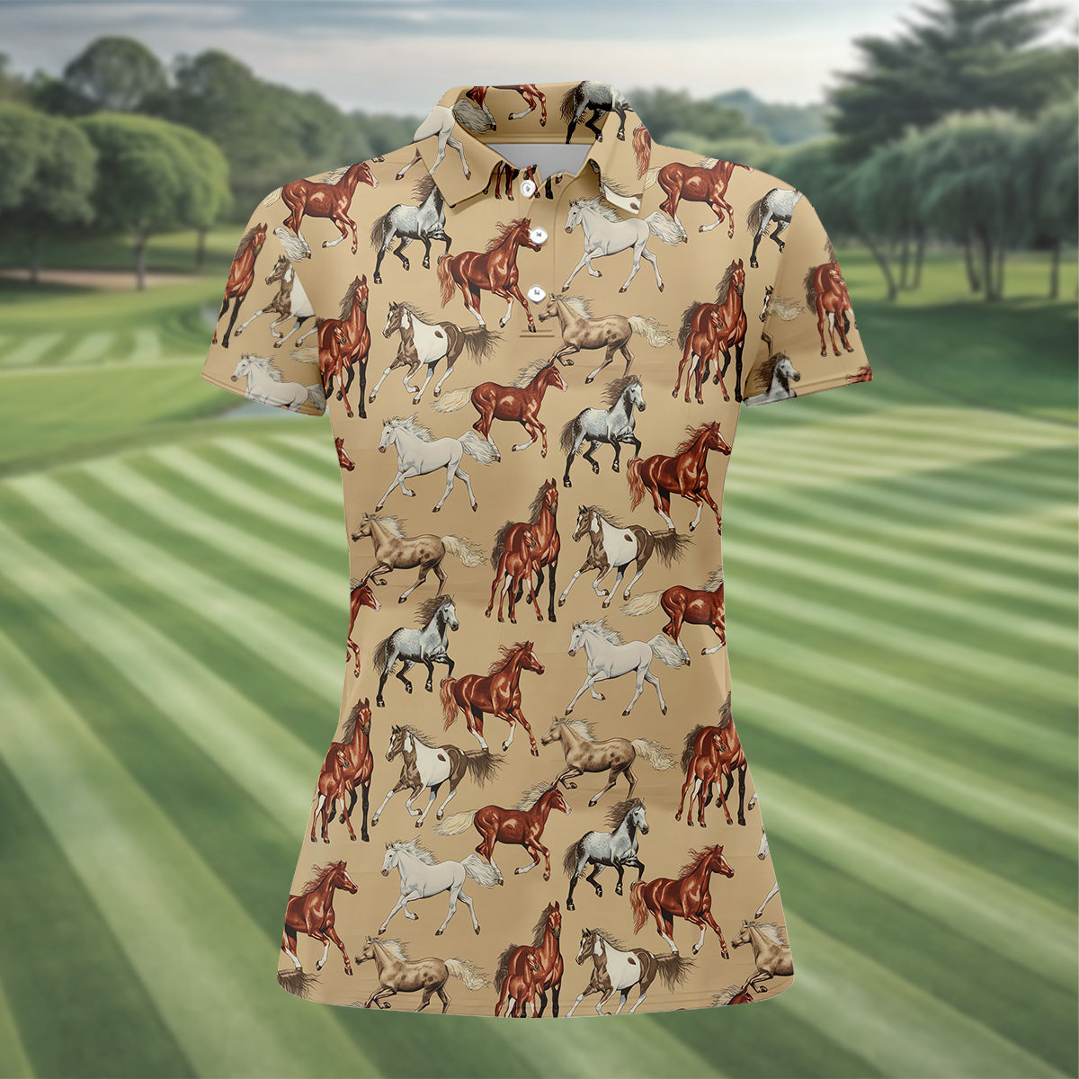Wild Horse Seamless Pattern Women Golf Top, Golf Shirt For Women, Patterned Golf Shirts