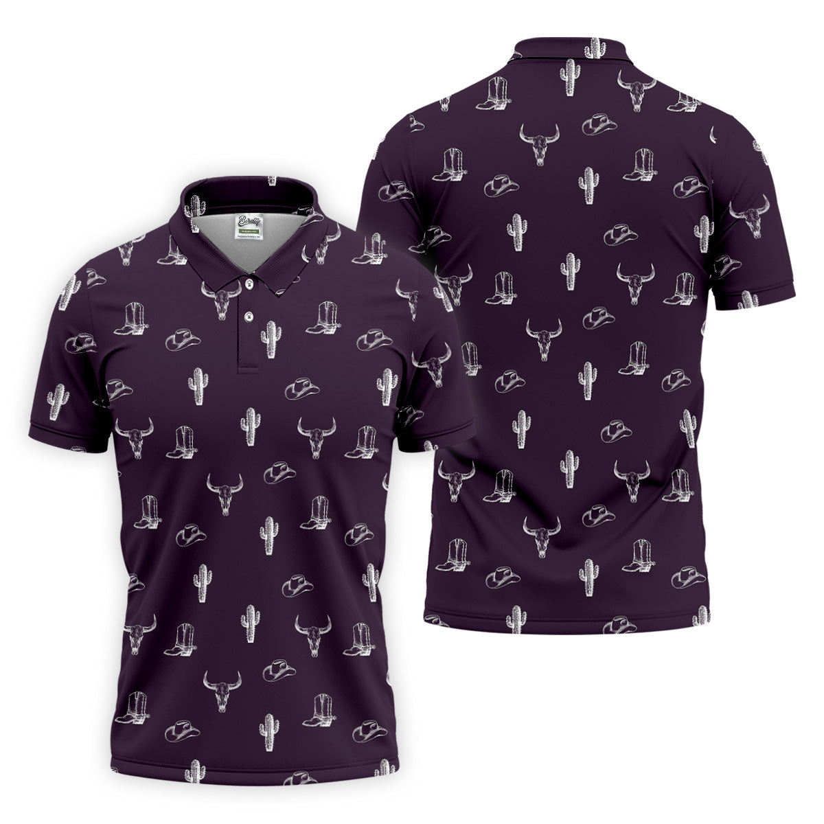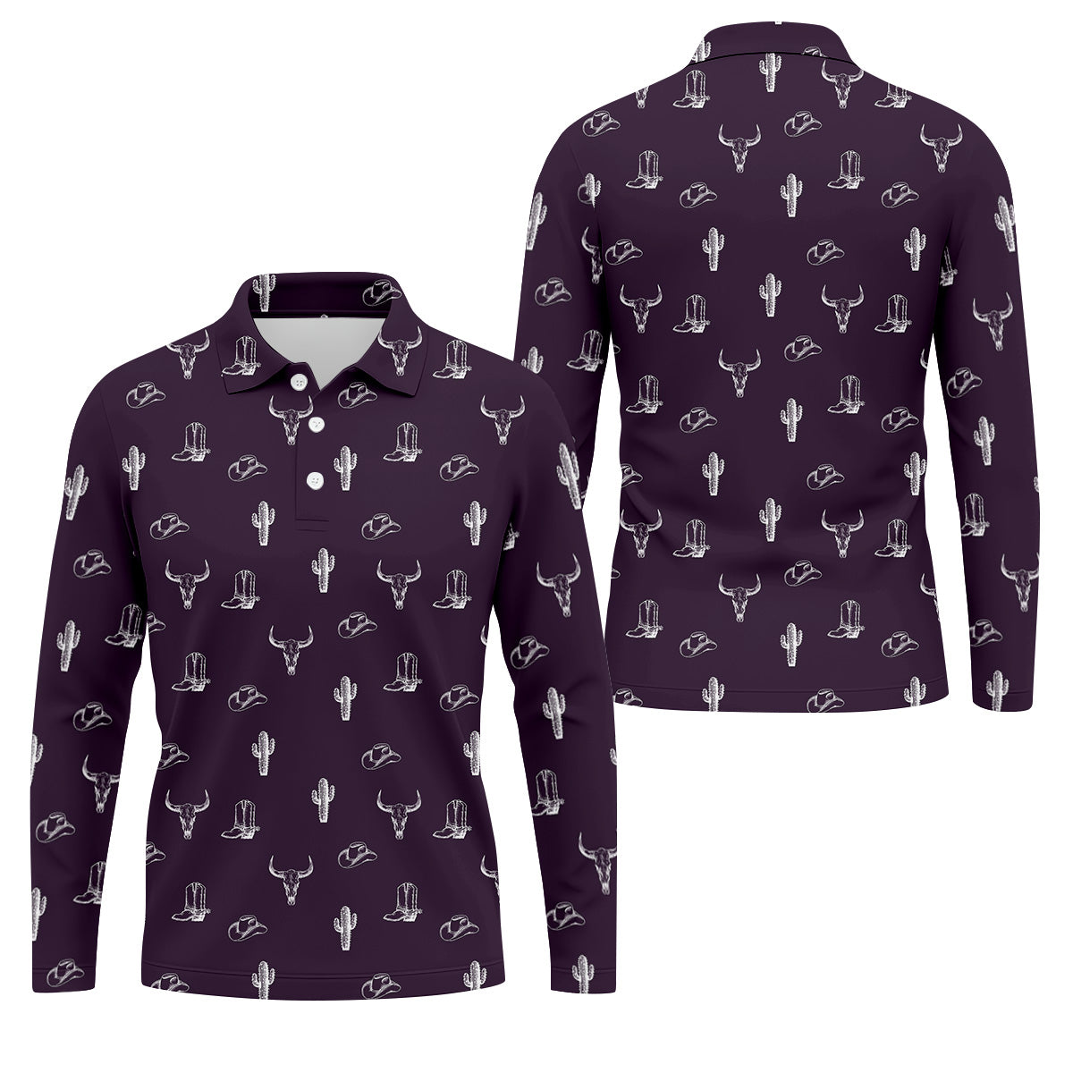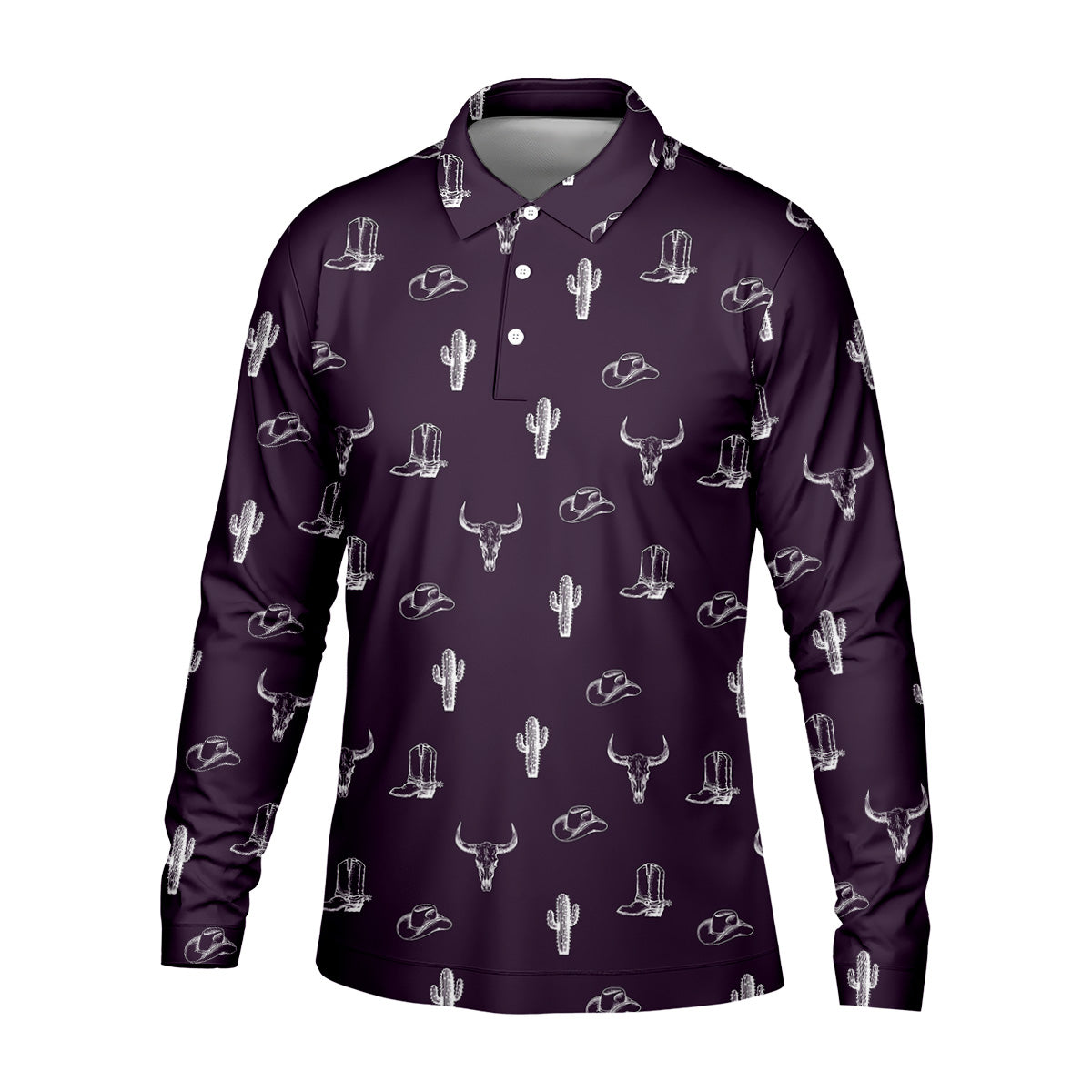 Wild West Cactus Purple Western Golf Shirt, Golf Tops For Men, Polo Shirts For Men, Golfing Apparel