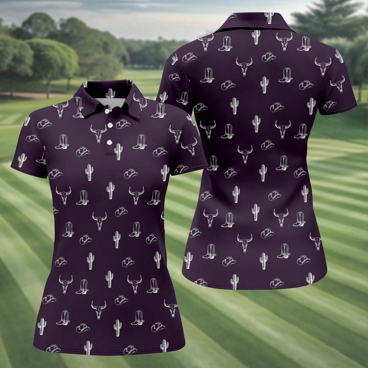 Wild West Cactus Purple Western Golf Shirts Women, Unique Gift For Golfer, Ladies Golf Shirts