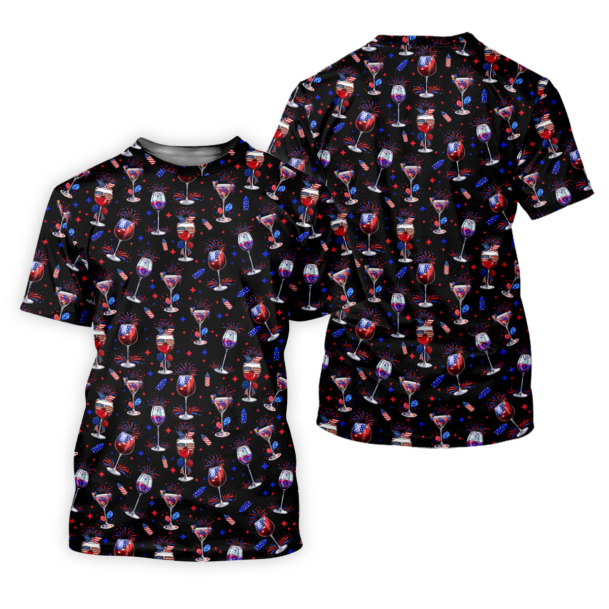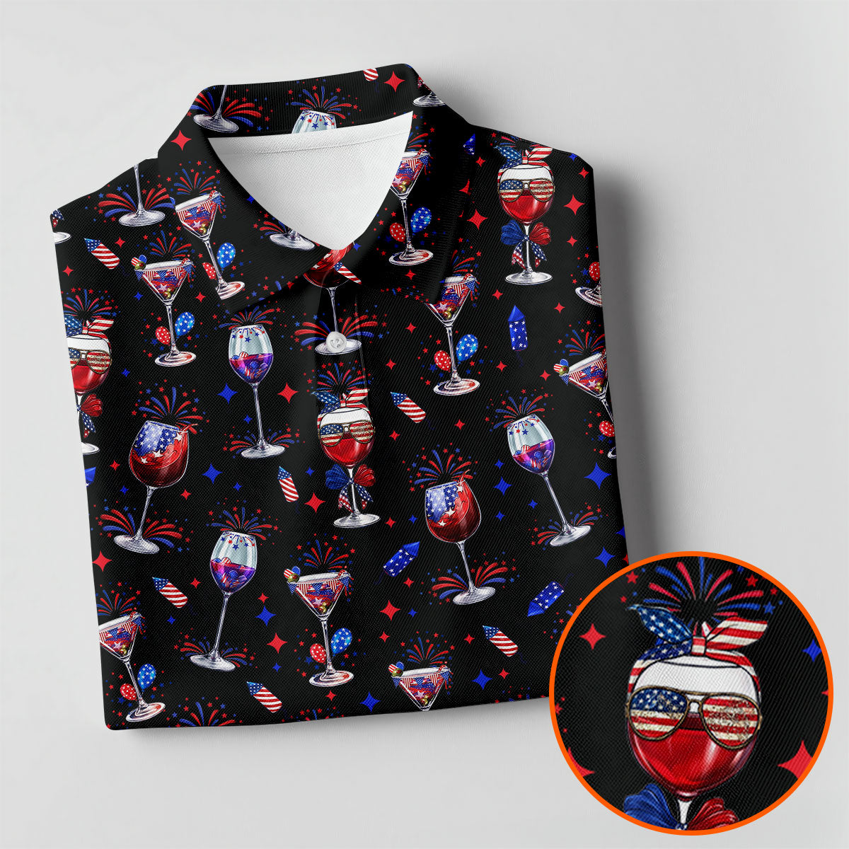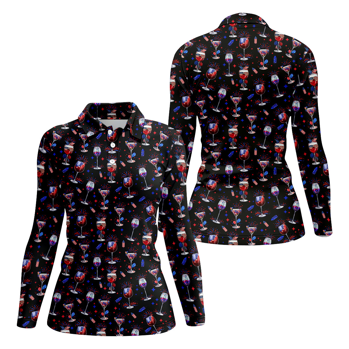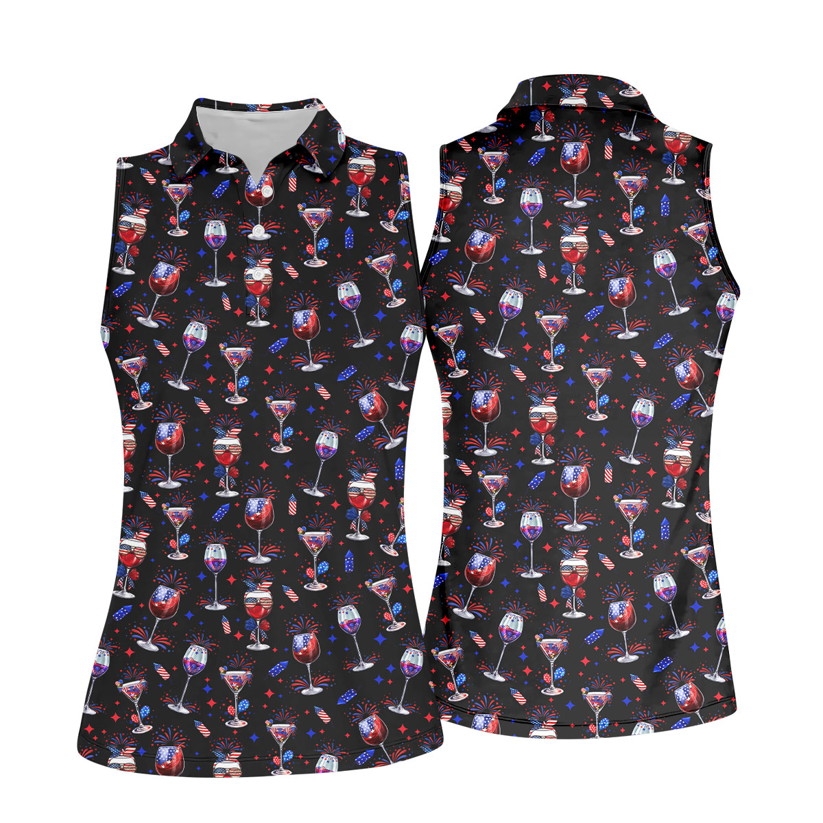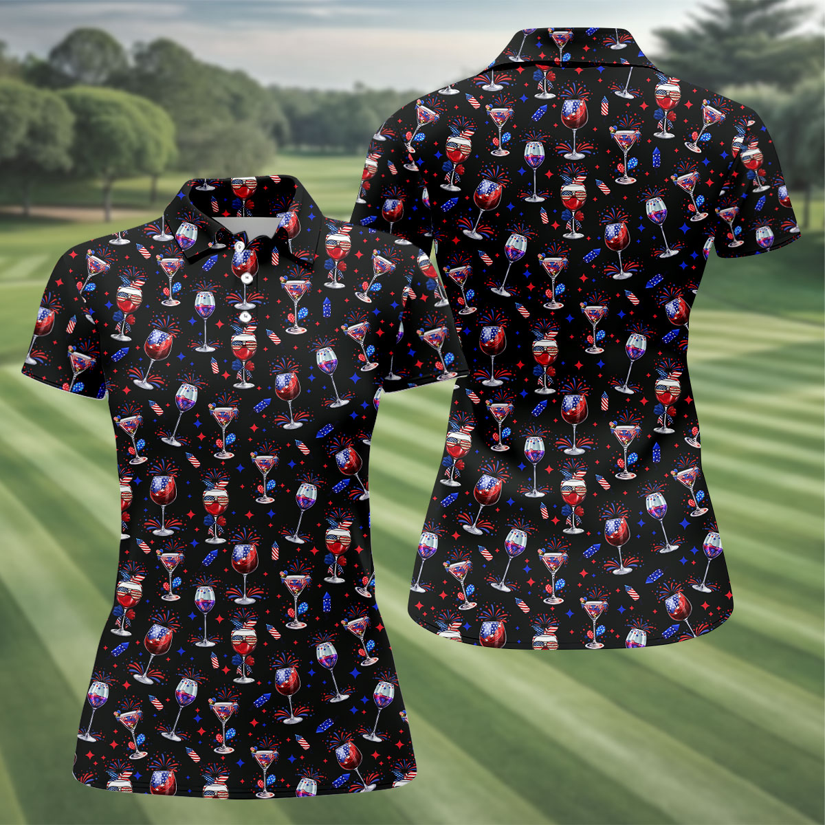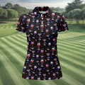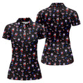 Wine And Martini American Flag Pattern Patriotic 4th Of July Black Golf Shirt, 250th Anniversary Women's Golf Tops