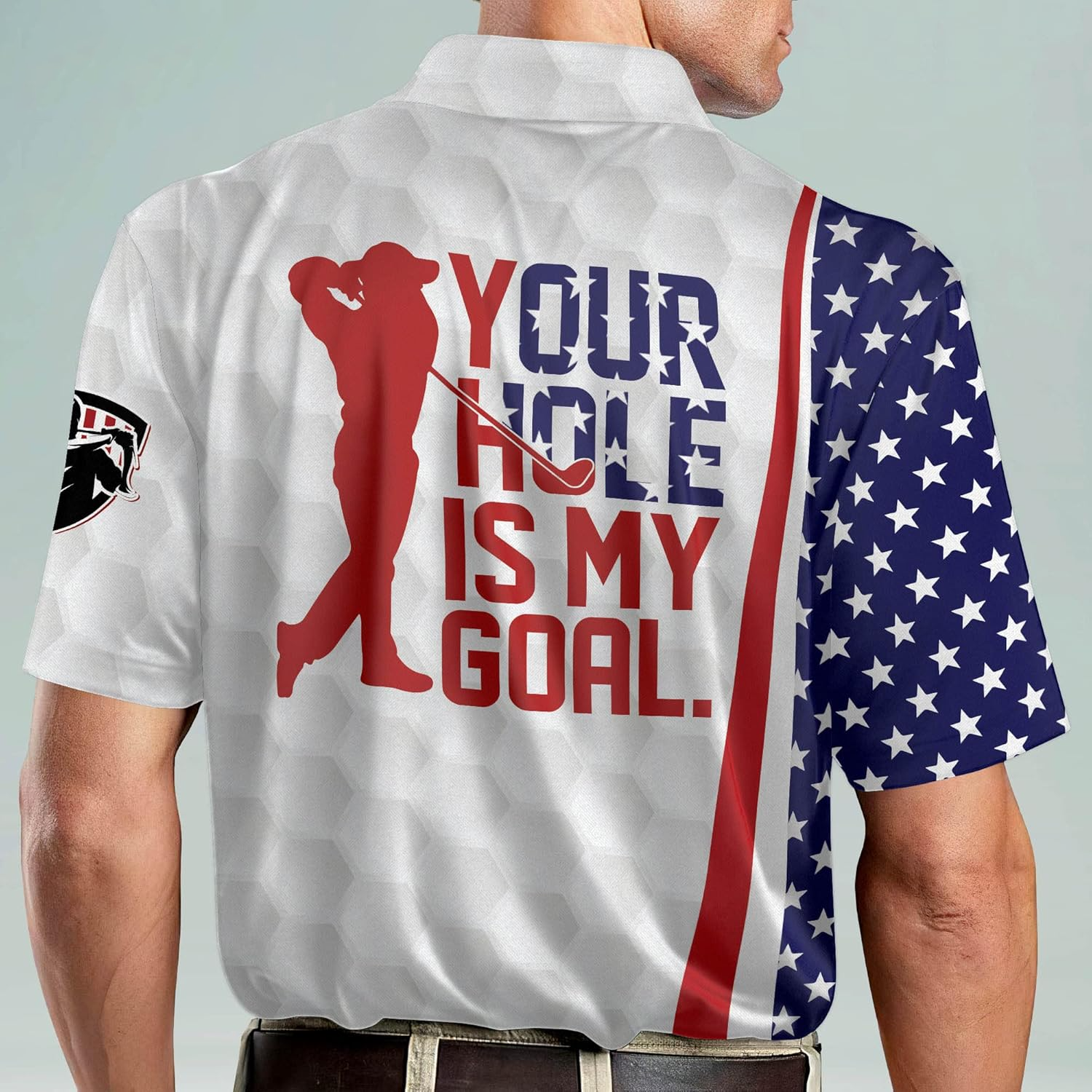 Your Hole Is My Goal Patriotic Day American Flag Golf Polo Shirts, Cool Golf Gift, Golfing Apparel